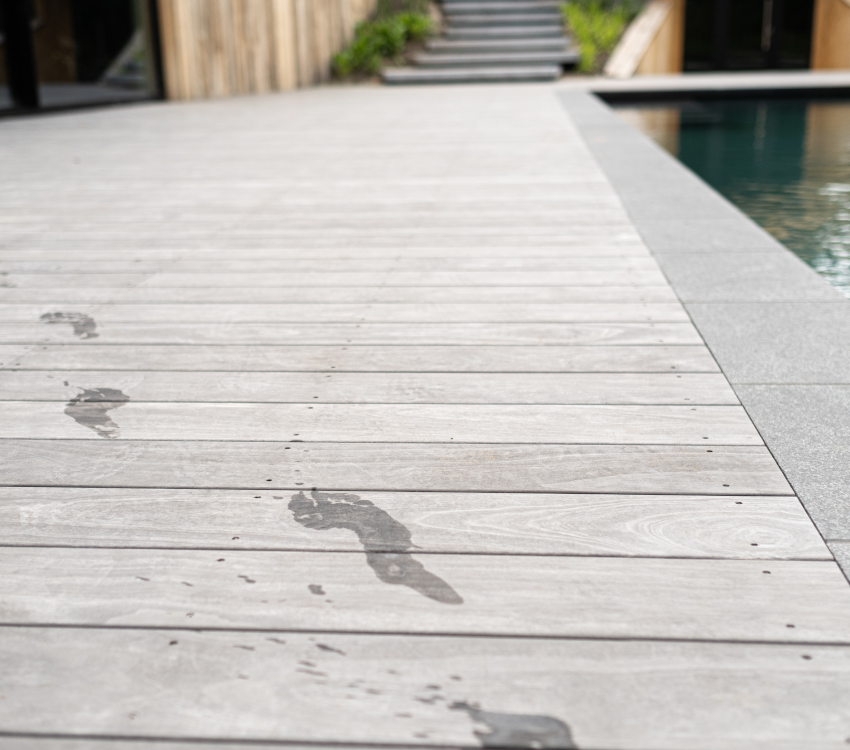 Die glatt gehobelte und egalisierte Oberfläche sorgt für ein ruhiges, geradliniges Erscheinungsbild. Sie unterstreicht die moderne, reduzierte Optik und ist zugleich angenehm begehbar. Dank der seitlichen Nut können die Dielen mit geeigneten Clipsystemen verdeckt befestigt werden. So entsteht eine durchgängige Fläche ohne sichtbare Schraubköpfe, was insbesondere bei designorientierten Projekten ein entscheidender Vorteil ist. Das Profilmaß von 25 mm Stärke bietet zusätzliche Stabilität und eignet sich hervorragend für häufig genutzte Außenbereiche wie Dachterrassen, Poolumrandungen oder großzügige Gartenanlagen.