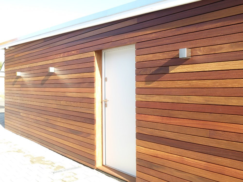 Mit einer Stärke von 20 mm wirkt die Rhombusleiste filigran, bleibt jedoch dank der hohen Rohdichte von Cumaru äußerst stabil und formbeständig. Die natürliche Farbpalette reicht von warmen Rotbraun- bis zu dunkleren Brauntönen und verleiht Fassaden eine lebendige, hochwertige Ausstrahlung. Die feine Maserung und das homogene Erscheinungsbild sorgen für ein modernes Fassadenbild mit klar definiertem Fugenverlauf.