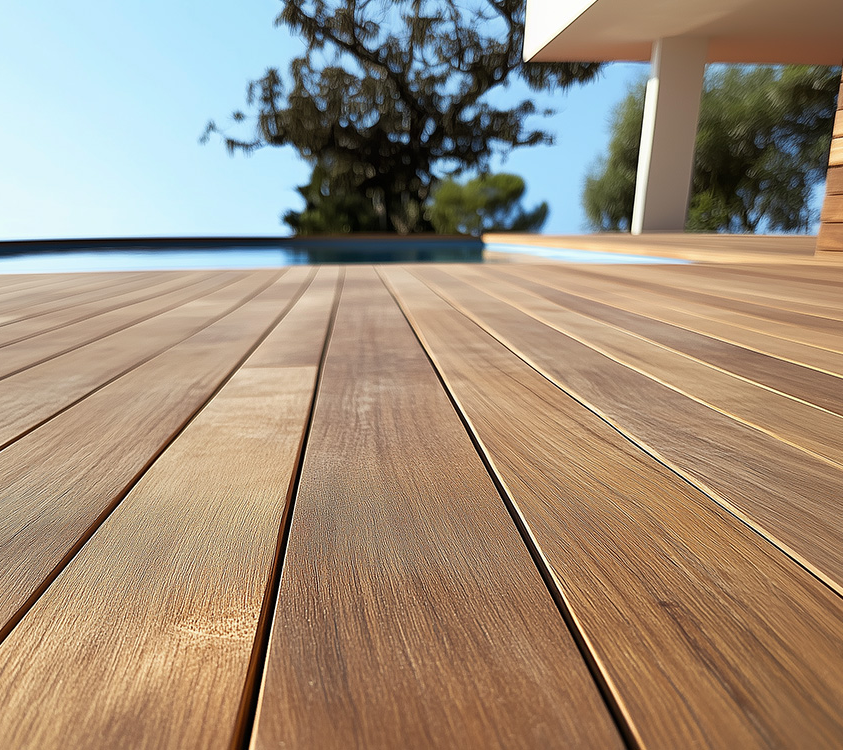 Optisch zeigt Ipe eine feine, dichte Struktur mit einer eleganten Maserung. Die Farbgebung reicht von warmen Braun- und Olivtönen bis hin zu dunkleren Nuancen und verleiht jeder Terrasse einen individuellen Charakter. Die beidseitig glatt gehobelte Oberfläche sorgt für ein ruhiges, gleichmäßiges Flächenbild mit parkettähnlicher Anmutung. Beide Seiten können bei der Verlegung als Sichtseite genutzt werden, was zusätzliche Flexibilität bietet.