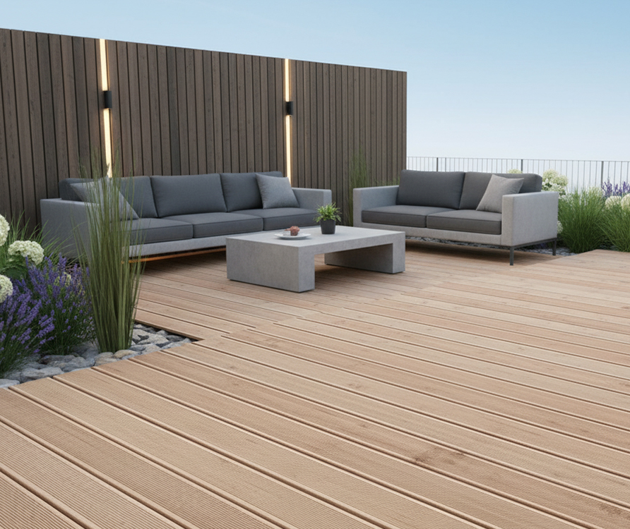 Die kanadischen Douglasie Terrassendielen in 27 × 143 mm, KD, fein/fein aus Sortierrücklagen bieten eine preislich attraktive Möglichkeit, eine langlebige und natürliche Holzterrasse zu realisieren. Sie eignen sich besonders für Projekte, bei denen ein authentisches Erscheinungsbild, solide technische Eigenschaften und ein gutes Preis-Leistungs-Verhältnis im Vordergrund stehen.