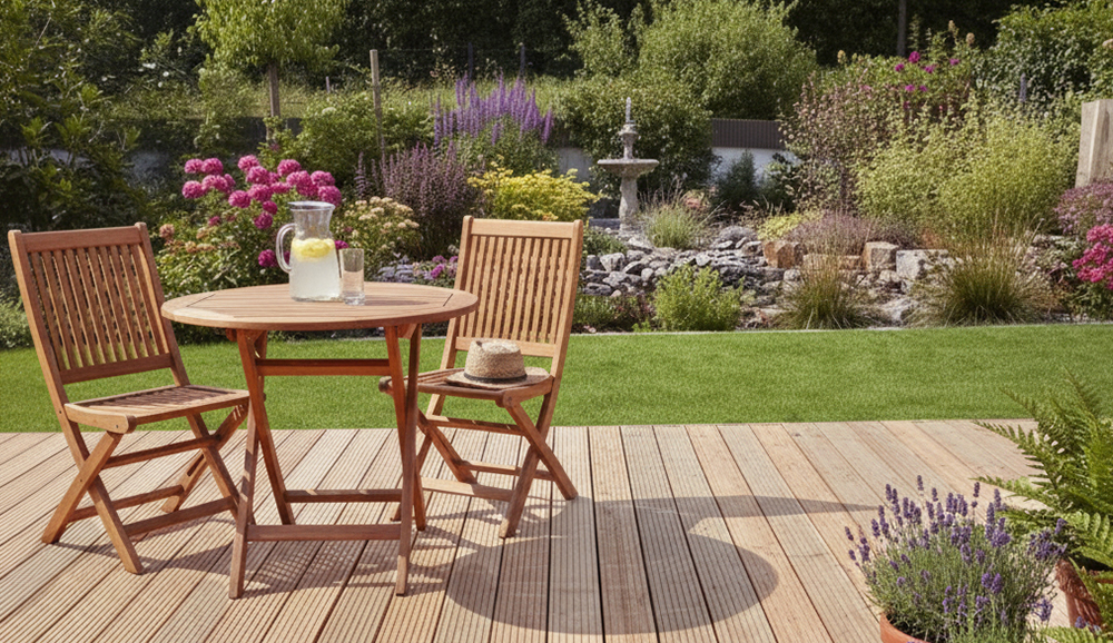 In der laufenden Pflege zeigt sich dieses Holz vergleichsweise unkompliziert. Regelmäßiges Abkehren entfernt Laub, Erde und organische Rückstände, die sonst Feuchtigkeit speichern und die Bildung von Algen oder Moos begünstigen könnten. Besonders bei grob geriffelten Oberflächen ist es wichtig, die Rillen sauber zu halten, um die Rutschhemmung dauerhaft zu erhalten. Bei stärkeren Verschmutzungen genügt in der Regel Wasser in Kombination mit einer weichen Bürste oder einem milden Holzreiniger. Hochdruckreiniger sollten nur sehr vorsichtig eingesetzt werden, da sie die Holzfasern aufrauen und die Oberfläche dauerhaft schädigen können.